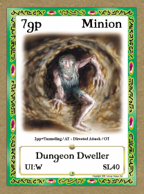 Play Notes: The Dungeon Dweller can do a normal melee attack or you can direct it toward a target of choice when you pay for tunneling on your turn. The Dungeon Dweller block tunneling enemies if you pay its tunneling cost of 2 power points on any turn.